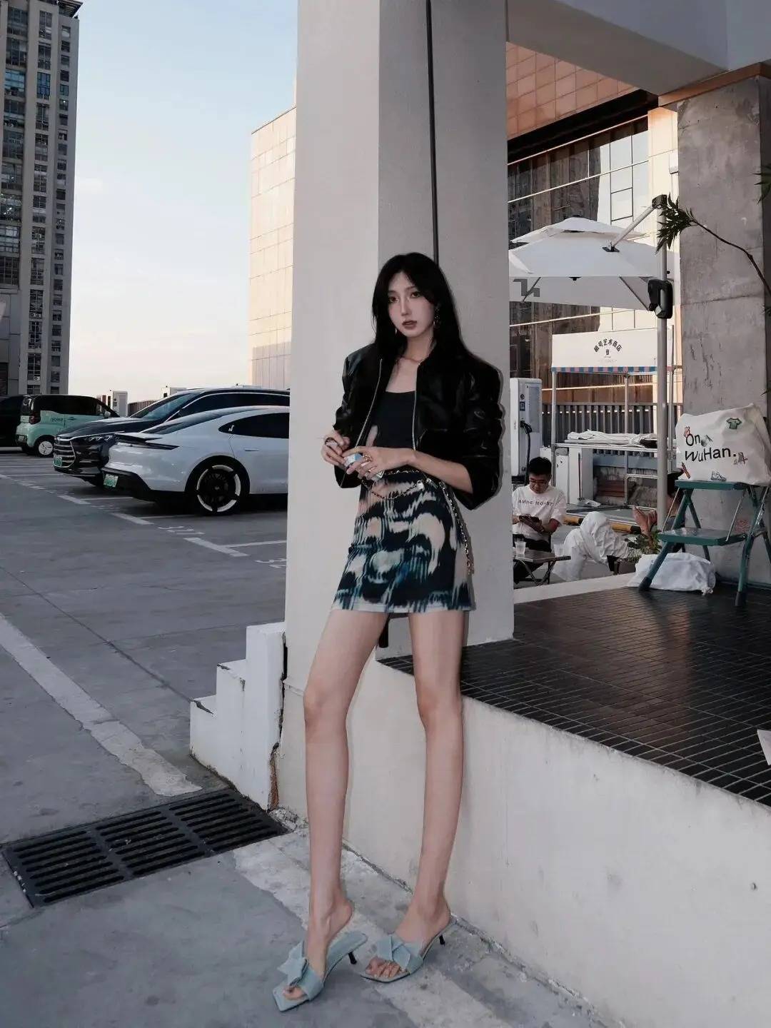 拍照时别让肢体僵成“板砖”,像图里这样借场景互动——倚墙、搭车、握小物件,让动作带点生活感。站位别死站成“电线杆”,腿微屈、肢体错开,既显线条又不刻意。眼神别空飘,要么放松看镜头,要么随动作自然瞥向别处,顺着环境的松弛感来,轻松拿捏随性不尬的氛围